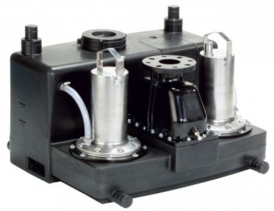 Kompakti, kytkentävalmis ja täysin upotettava kaksoispumppu-pumppaamo ulostepitoisen jäteveden pumppaamiseen.