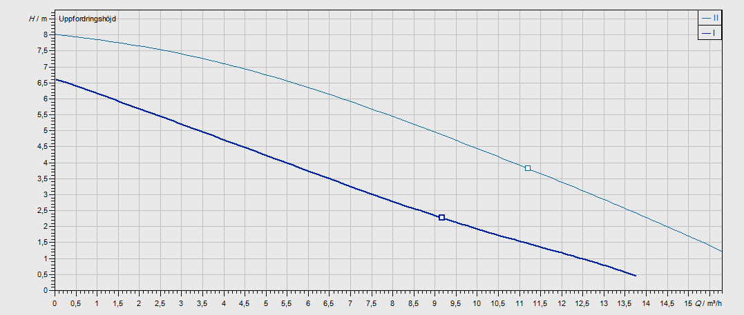 Nykyinen pumppu - Kiertovesi Pumppukäyrä