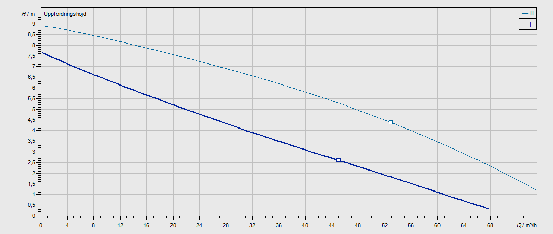 Nykyinen pumppu - Kiertovesi Pumppukäyrä