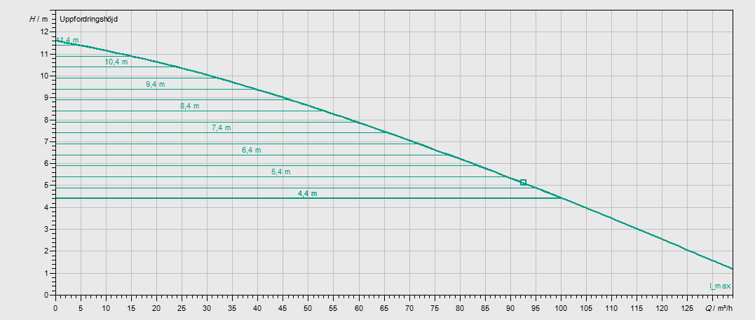Nykyinen pumppu - Kiertovesi Pumppukäyrä