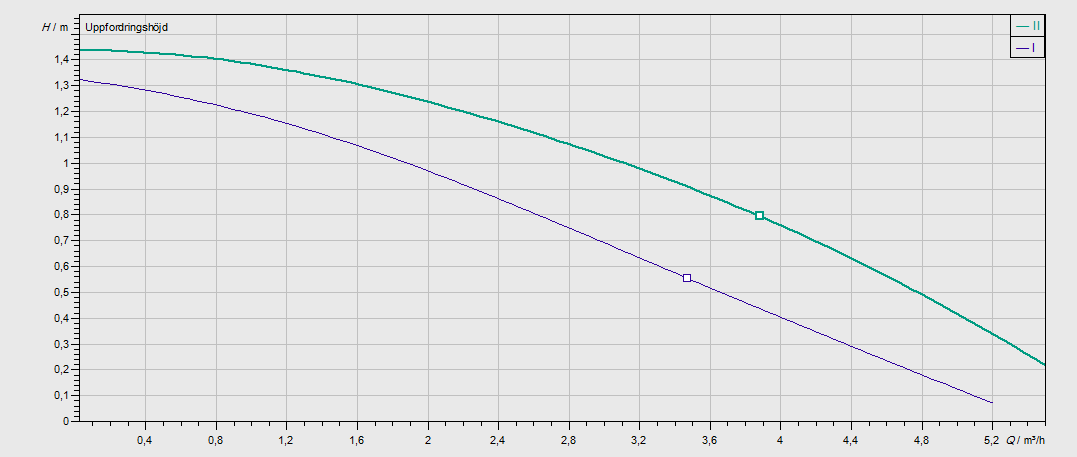 Nykyinen pumppu - Kiertovesi Pumppukäyrä