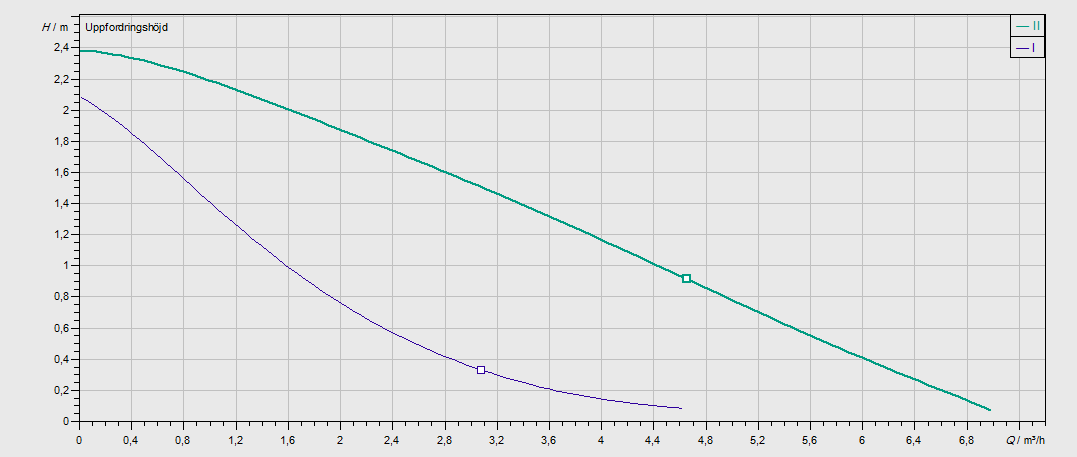 Nykyinen pumppu - Kiertovesi Pumppukäyrä