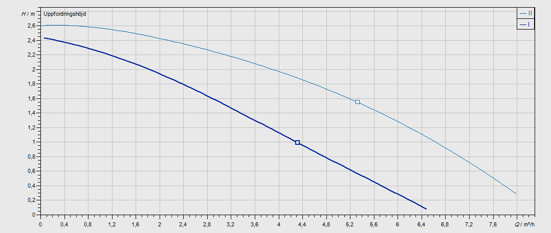 Nykyinen pumppu - Kiertovesi Pumppukäyrä