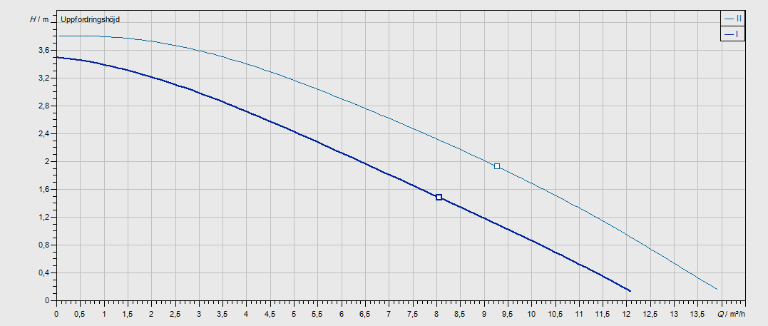 Nykyinen pumppu - Kiertovesi Pumppukäyrä