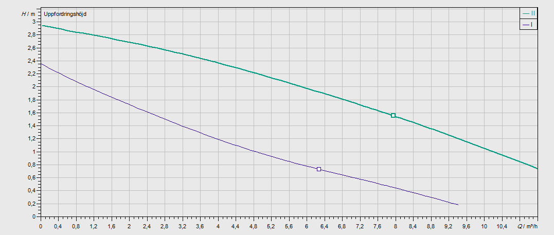 Nykyinen pumppu - Kiertovesi Pumppukäyrä