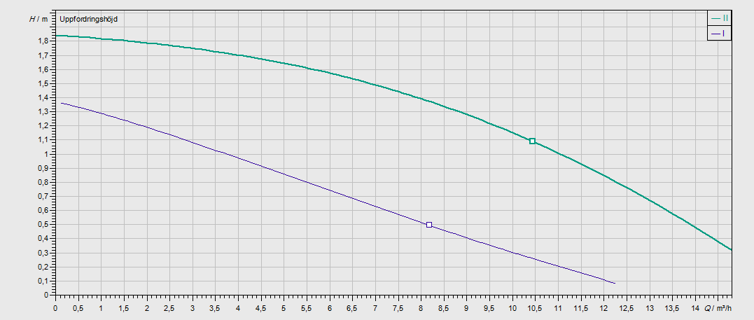 Nykyinen pumppu - Kiertovesi Pumppukäyrä