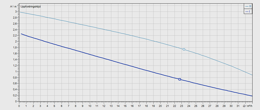 Nykyinen pumppu - Kiertovesi Pumppukäyrä