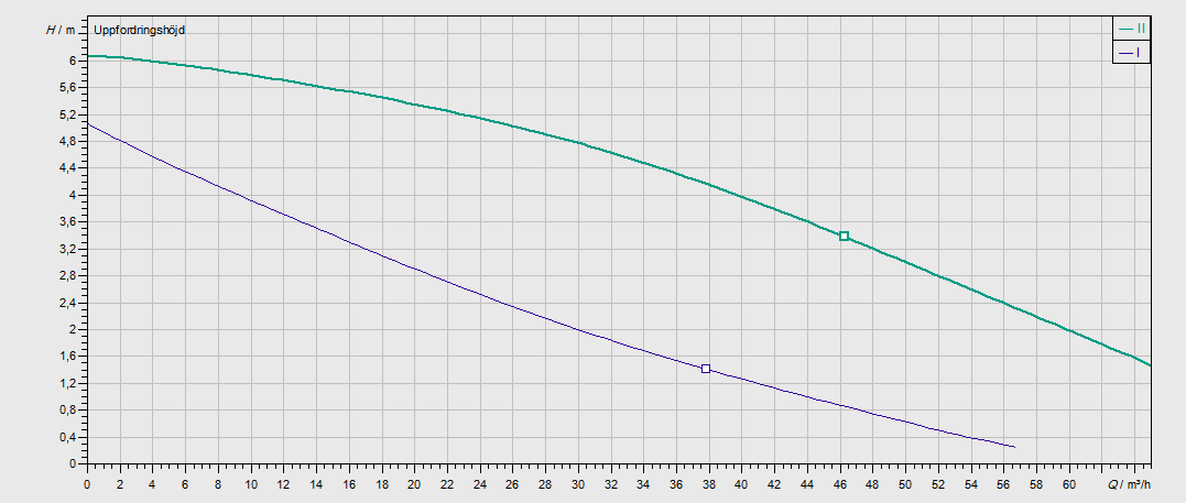 Nykyinen pumppu - Kiertovesi Pumppukäyrä