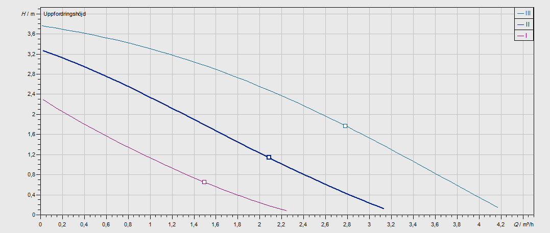 Nykyinen pumppu - Kiertovesi Pumppukäyrä