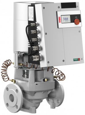 High Efficiency-Inlinepumppu EC-moottorilla ja elektronisella tehon mukautuksella kuivamoottoripumppurakenteena. Malli yksijaksoisena pienpaine-keskipakopumppuna laippaliitännällä ja liukurengastiivisteellä.