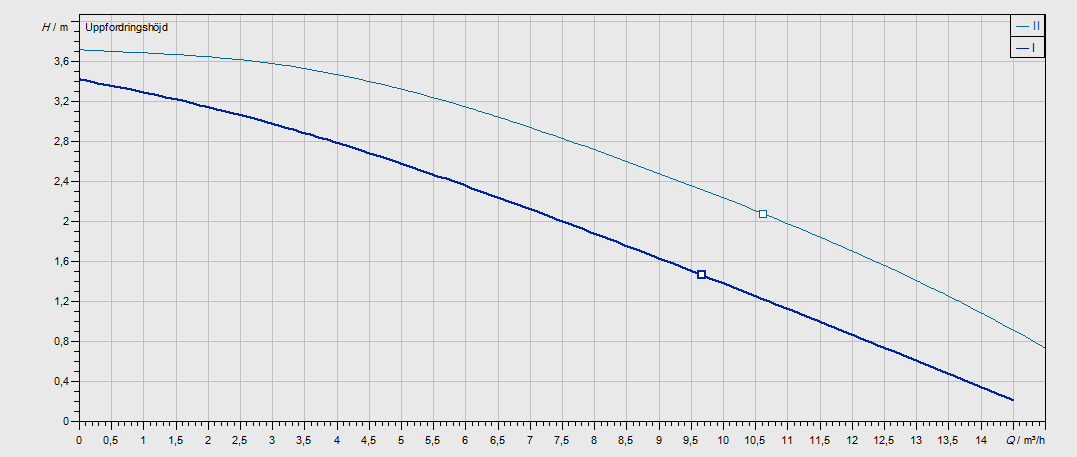 Nykyinen pumppu - Kiertovesi Pumppukäyrä